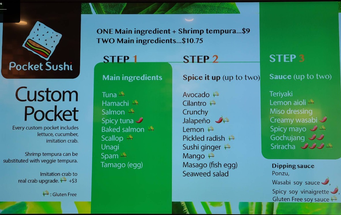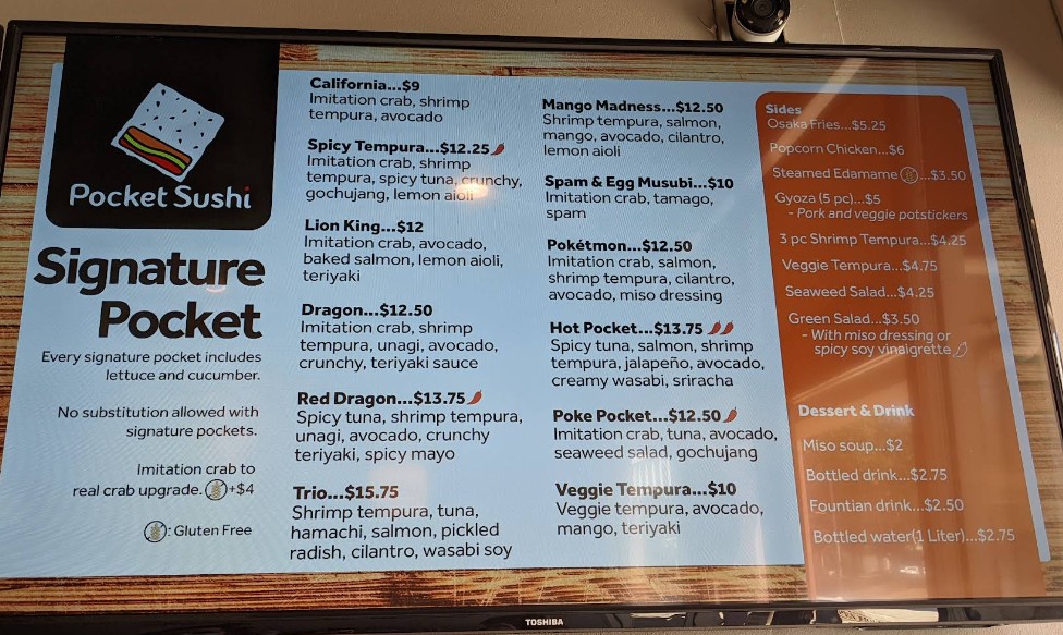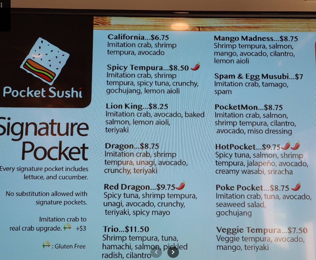 Pocket Sushi Restaurant is your go-to destination for fresh, delicious sushi and Japanese comfort food in a relaxed and welcoming setting. Known for quality ingredients, generous portions, and fast service, Pocket Sushi Restaurant offers everything from classic sushi rolls to customer-favorite specialties perfect for lunch, dinner, or takeout. Whether you’re dining in or grabbing a quick bite, we’re committed to delivering great flavor, consistent quality, and an enjoyable sushi experience every time you visit.